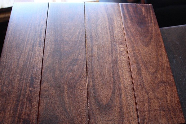 Solid Asian walnut(acacia) flooring, its rich dark chocolate color, purplish overtones and complex swirling grain patterns make it a rare and spectacular flooring choice whether left natural or stained. The fluid nature of Walnut’s grain makes a dynamic statement that seems to be ever-changing.